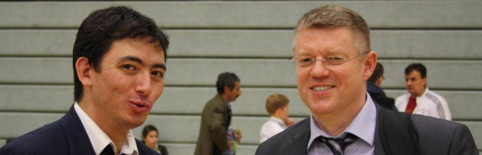 Bild links: Trainer Mike Paustian gibt seinem Schützling Nils Böing letzte Anweisungen und beruhigende
